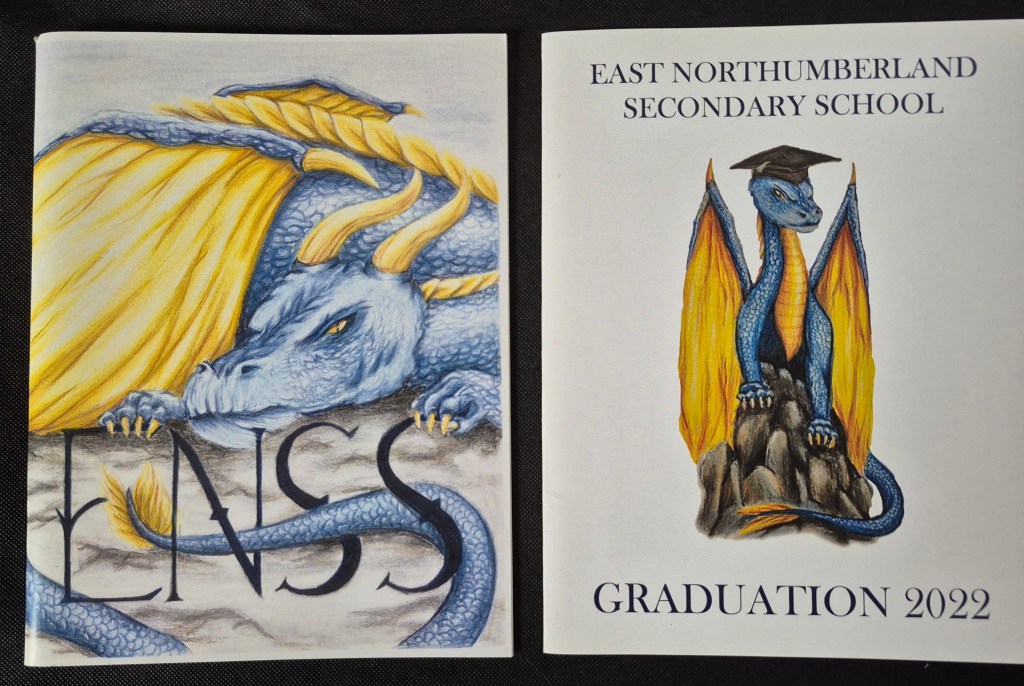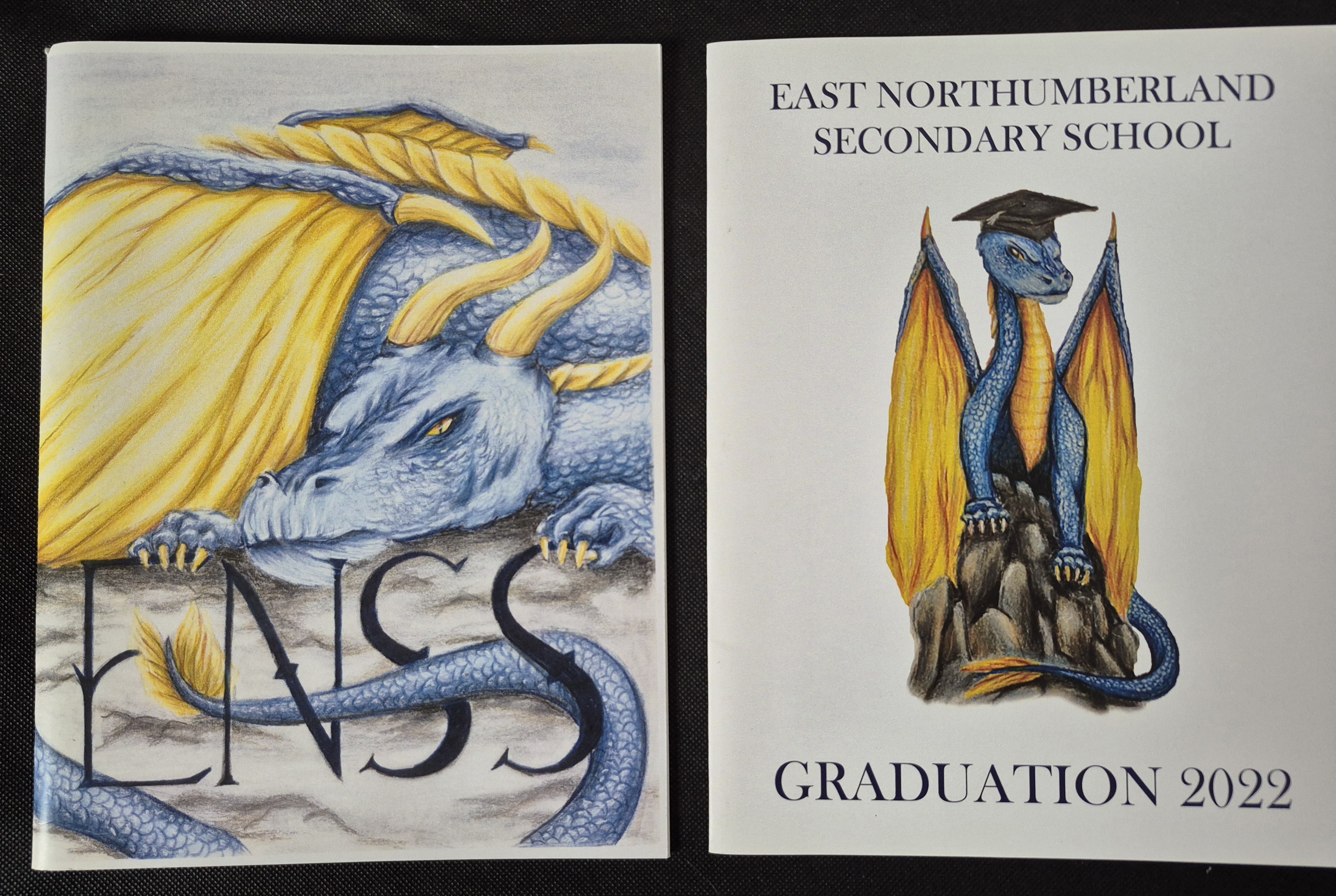 In 2022, I designed the yearbook cover and SHSM (Specialist High Skills Major) logo for East Northumberland Secondary School during my 12th grade year. I worked closely with the school’s art teacher and head planners, attending regular meetings to ensure the designs aligned with the school’s vision. For the yearbook, I had full creative freedom and chose to create a hand-drawn illustration of the school’s mascot, incorporating school colors, thoughtful kerning, and strong typography. For the SHSM logo, I produced multiple mockups and collaborated with teachers to refine a design that best represented the program’s goals and identity.